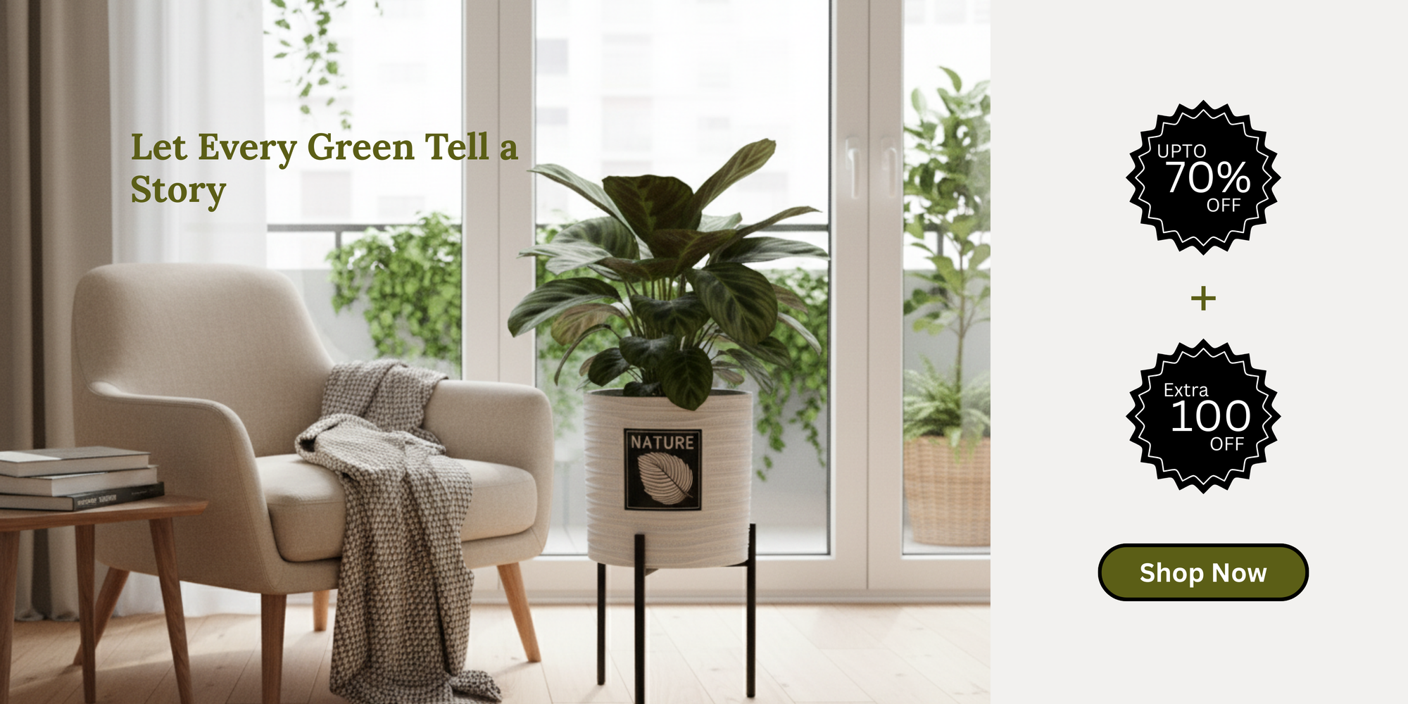 Nature-Inspired White Ceramic Planter with Black Metal Stand