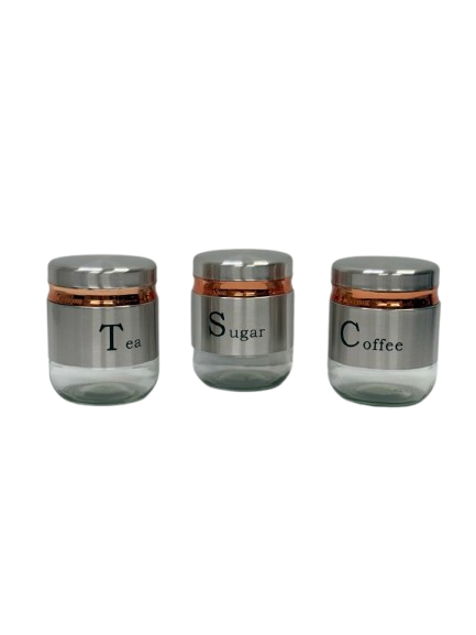 "Stainless Steel Tea Coffee Sugar Glass Jar Set