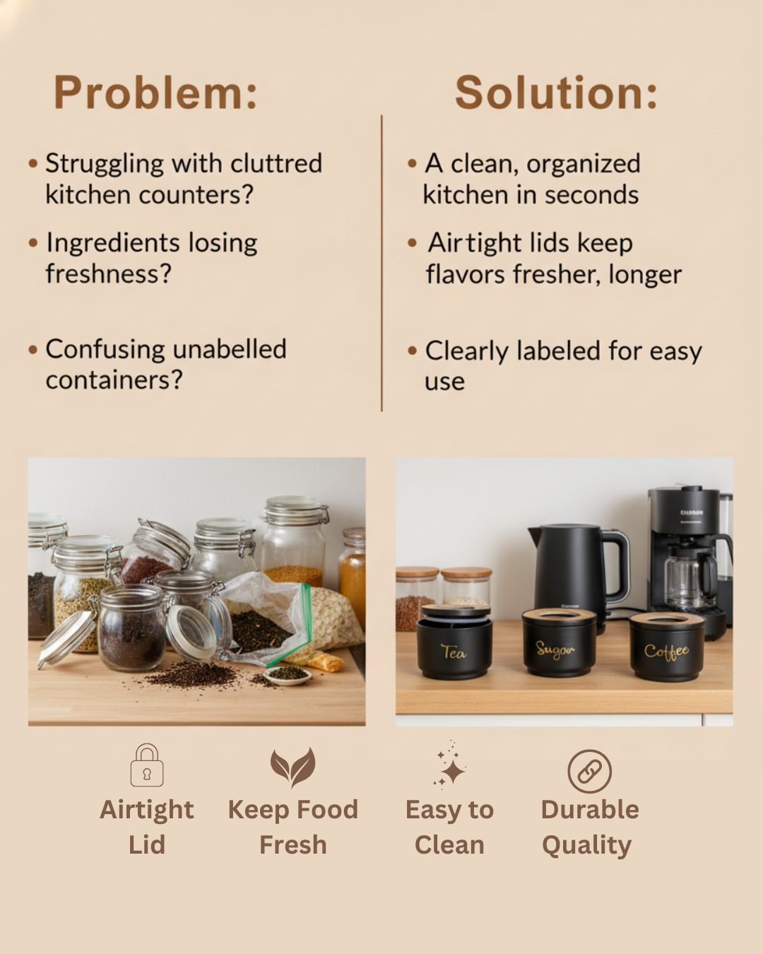 Ideal for storing tea, coffee, and sugar in a neat and organized manner.